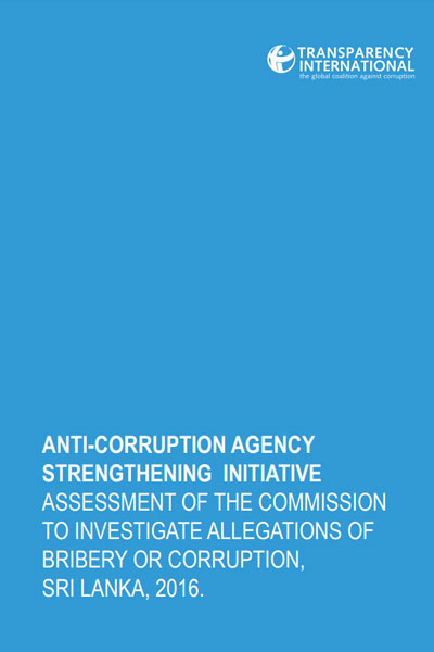 Employing this tool, Transparency International Sri Lanka (TISL) implemented an assessment of Sri Lanka’s Anti-Corruption Agency, the Commission to Investigate Allegations of Bribery or Corruption (CIABOC).