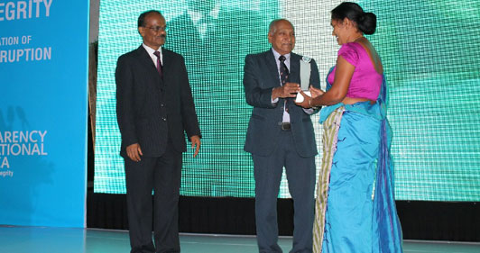 The late Nihal Perera , former  Superintendent of Noori Estate in Ratnapura  who paid the price with his life for fighting against corruption and fraud  won the National Integrity Award 2014 for his fearless work at a ceremony held at the BMICH on 09th December.
