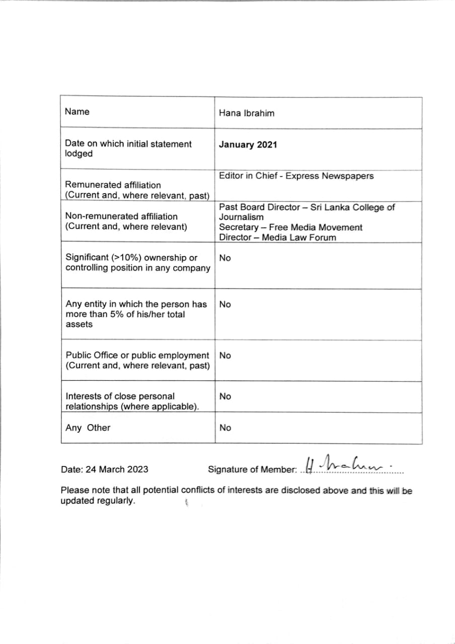 Hana Ibrahim is the Editor in Chief of the Daily Express/Weekend Express, published by Express Newspapers Ceylon Ltd and Turning Points, an annual New York Times/Weekend Express co-branded magazine. A journalist by profession, she has a MS in Journalism and over 25 years local and international experience in the media industry. She is founder editor of Ceylon Today (Daily and Sunday) and the former editor of Sunday Standard; Senior Associate Editor, Sunday Observer and ‘friday’, a weekly tabloid, conceived and launched by her. She also worked as a journalist for a short period in the United States and for a longer period in the United Arab Emirates, for the Gulf News, covering a wide range of international issues, from the wars in Somalia and Bosnia to the Iraqi invasion of Kuwait and the subsequent war on Iraq. She has also interviewed a number of world leaders.