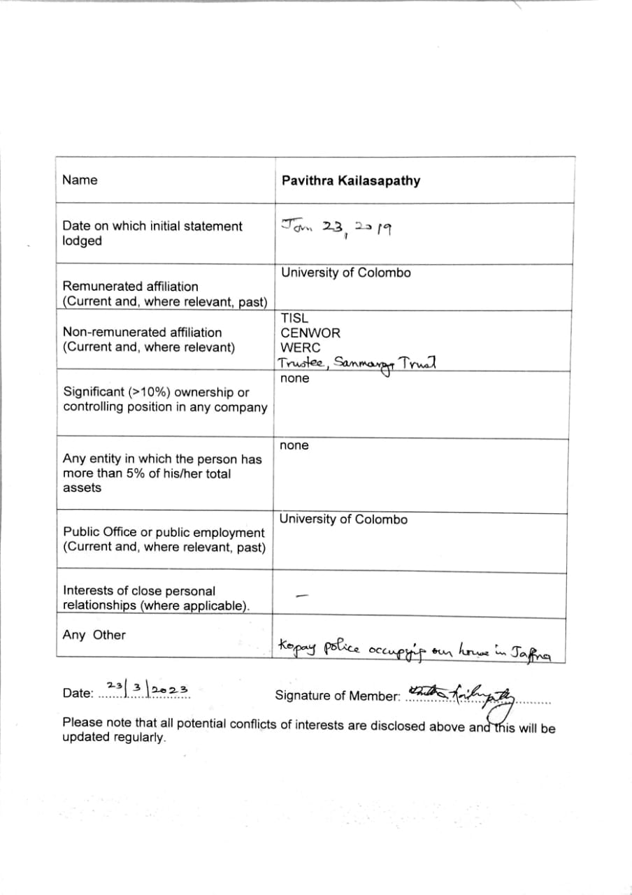Pavithra is an Associate member of Institute of Personnel Management Sri Lanka and was a member of the IPM Council in 2002/3. She was a Director of the Board of Women’s Education and Research Centre, Colombo, and Step-by-Step Studio, Colombo. She was also the Treasurer for 3 ½ years in